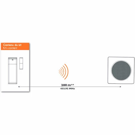 La technologie radio utilisant la fréquence 433.92 MHz permet de faire communiquer ce détecteur avec sa base carillon jusqu’à une distance de 200m en champ libre. La détection se fait quand les deux boitiers ne sont plus face à face. Le détecteur déclenchera la sonnerie de votre carillon lors de l’ouverture d’une porte ou d’une fenêtre pour être informé à l’avance de l’arrivée d’un visiteur.