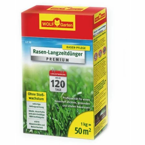 WOLF GARTEN Engrais pour la pelouse LE 50 / 1 kg / 50m² • Taille paquet de 50 m² LE 50 PELOUSE À LONG TERME FERTILISANT